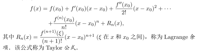 (1)Taylor公式的出发点是用一个多项式函数来近似地表示一个复杂的函数,但是要求该复杂函数有高阶导数(很好的光滑性).Taylor公式的基础也是微分中值定理.