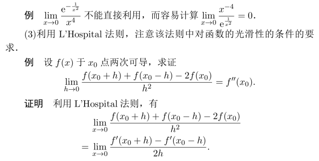 (2)在利用L’Hospital法则求函数的极限时,应当注意两点: