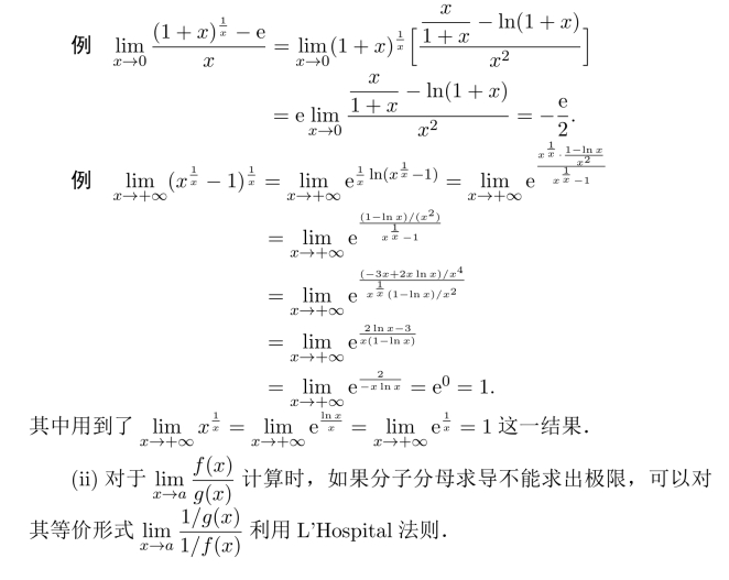(4)其他类型的不定型如∞−∞型,0·∞型,00型,1∞型,∞0型,都可以化为型或者