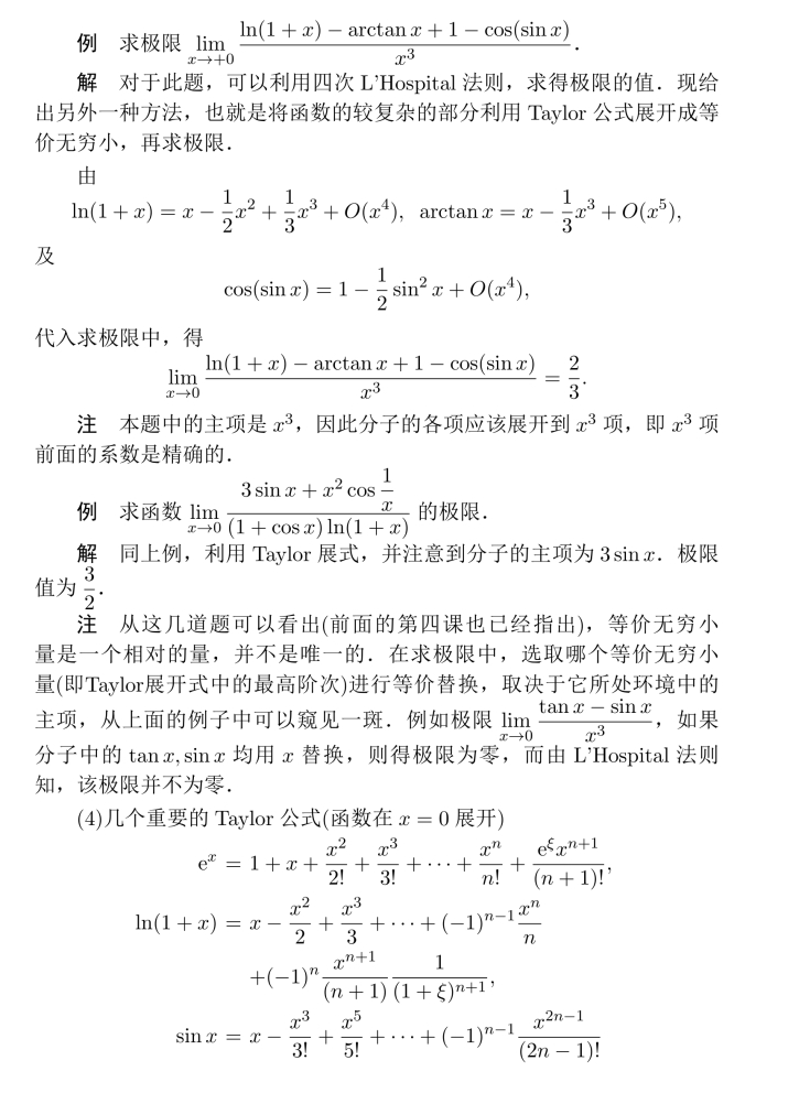 注 最后一个式子比较重要,常常用来求其他函数的Taylor展开式.