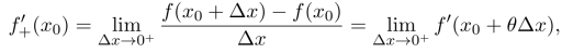 式中利用了Lagrange中值定理,其中θ∈(0,1).由于f′(x0+0)存在,由定义,可知