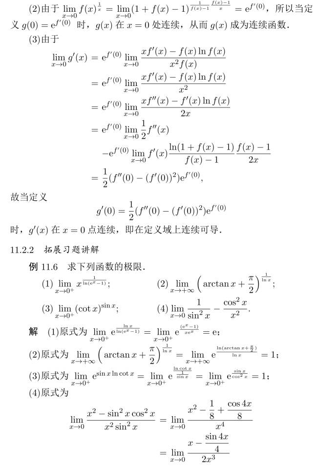 例11.5 已知f(x)为实轴上二阶连续可导的正值函数,f(0)=1.定义g(x)=(x≠0).