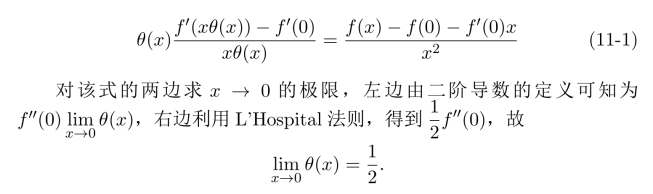 因为二阶导数f′′(x)在(−1,1)内连续且不为0,故f′′(x)在(−1,1)内不变号.假设f′′(x)>0,从而f′(x)在(−1,1)内严格单增,所以上式中的θ(x)是唯一的.