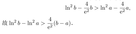 因此,当e<a<b<e2时,φ(b)>φ(a),即