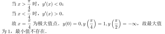 例12.4 求函数y=2tanx−tan2x,0≤x的最大值和最小值.