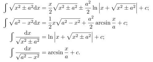 这几种形式的不定积分,应熟练掌握其变量替换形式和推导方法,并在此基础上最好记住这些结果,可以作为积分公式使用.