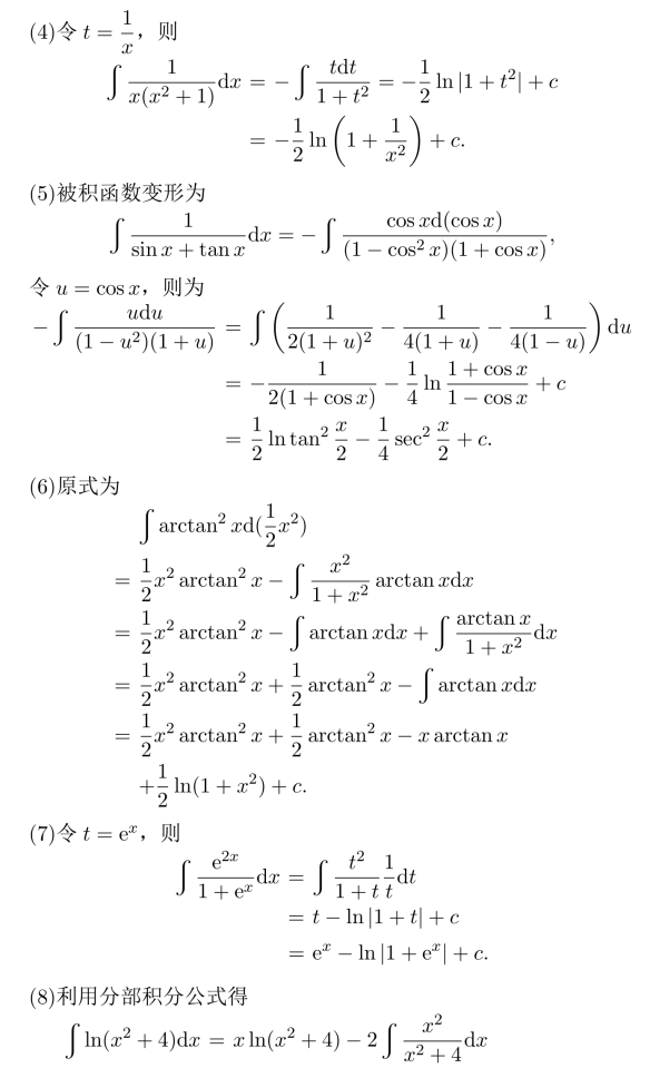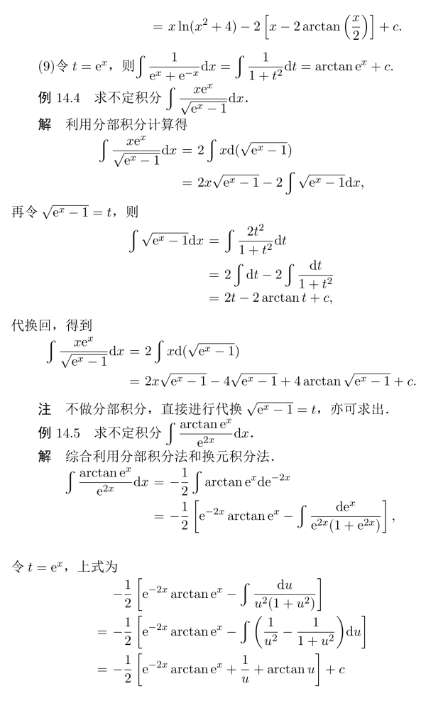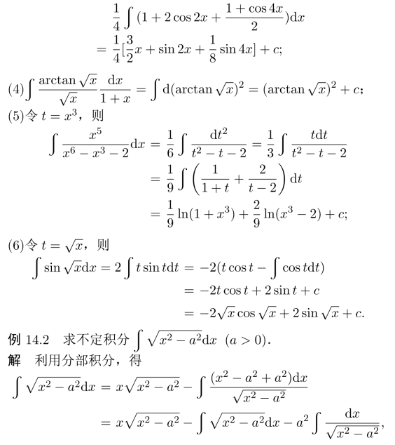 注 本题也可以令x=asecθ替换,利用拓展习题讲解例14.3(2)计算,但是同样要利用分部积分公式得到结果.