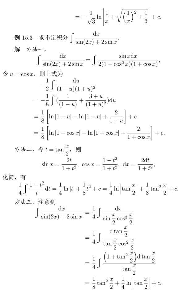 注 以上两种方法得到的不定积分是只差一个常数吗?为什么?