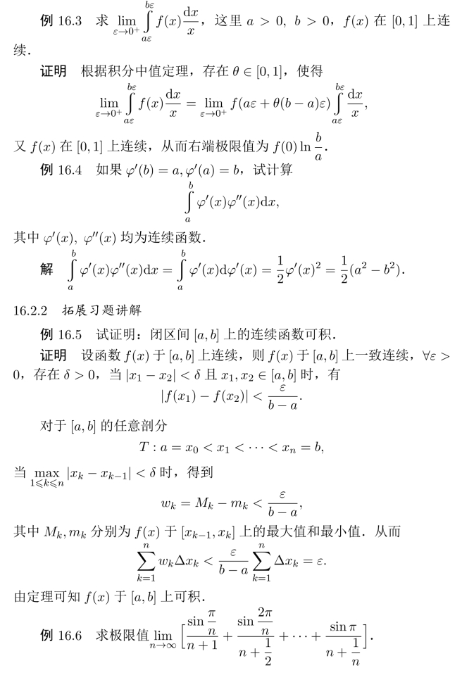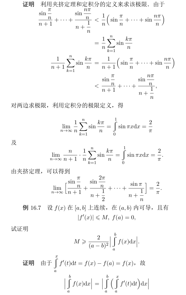 例16.1 设f(x)在[a,b]上连续,且f(x)≥0,证明:如果