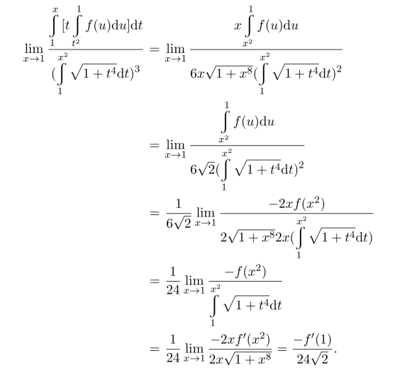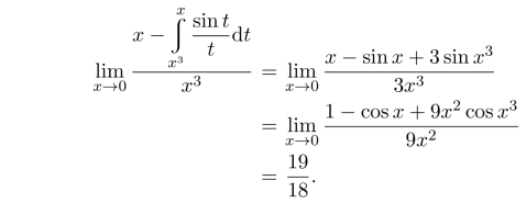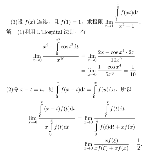 其中第二步利用了积分中值定理,因为f(x)连续,不能再利用L’Hospital法则了.