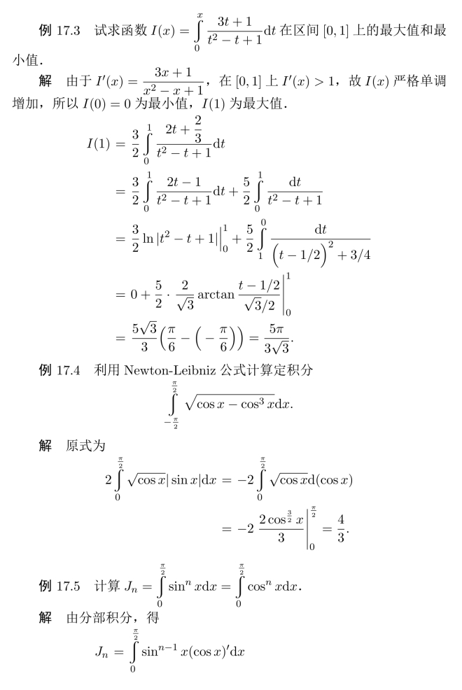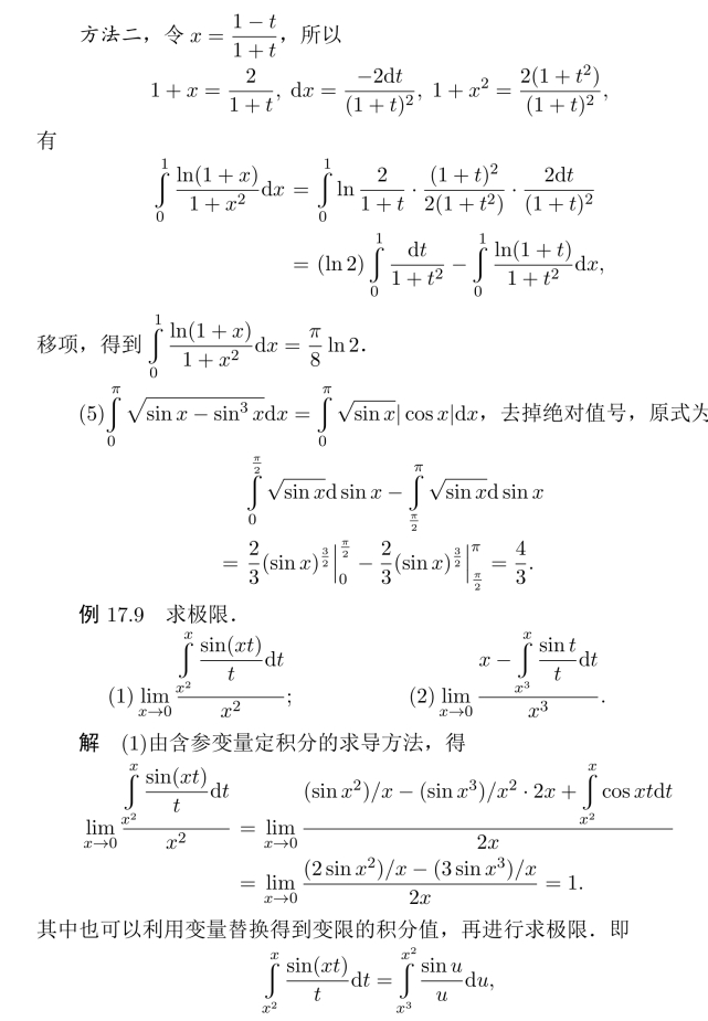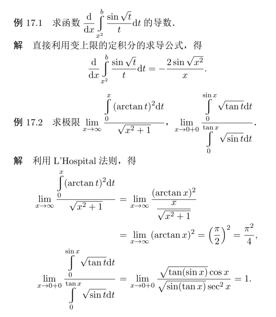 例17.6 求变上限定积分的导数或极限.