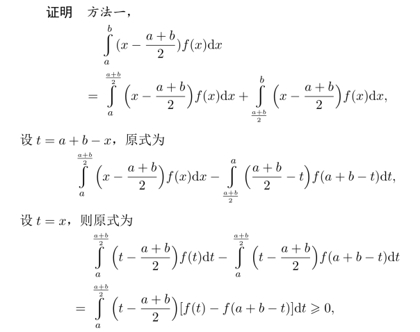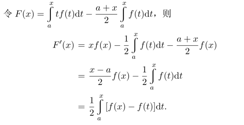 由f(x)在[a,b]上单增,得到F′(x)≥0,从而F(b)≥F(a)=0,得证.