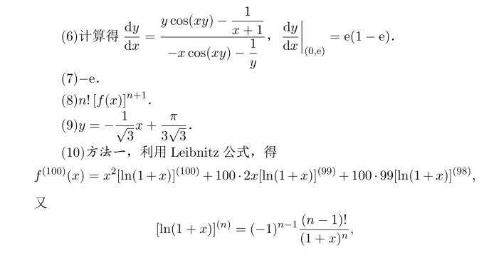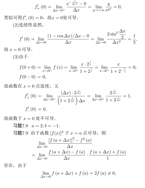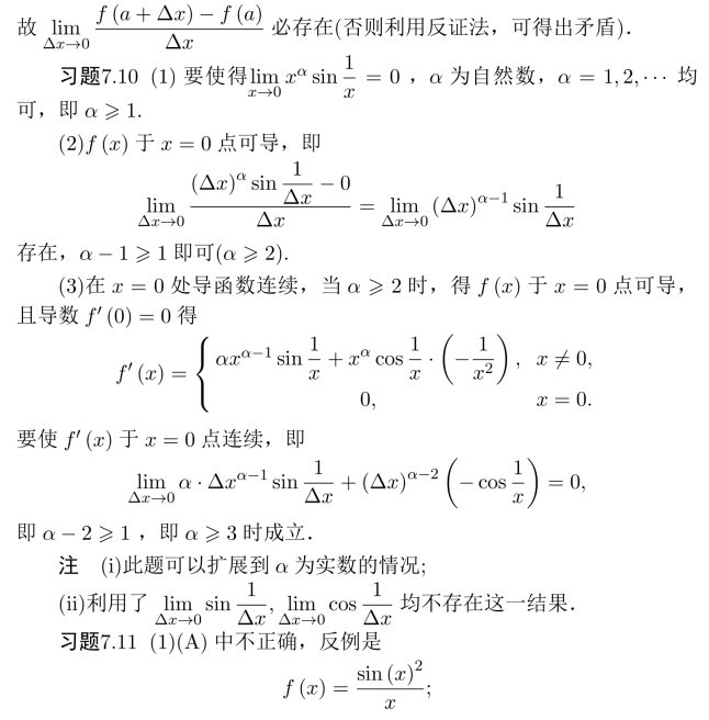 习题7.12 (1)(B)正确;(A)只能得到(0)存在;(C)为主干成立的必要而非充分条件;(D)不正确.