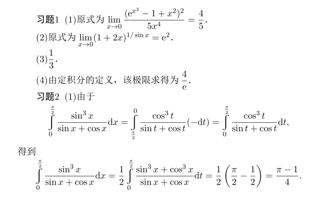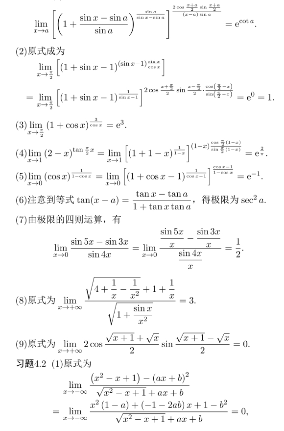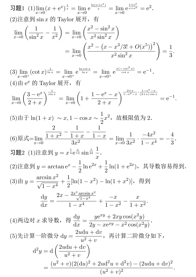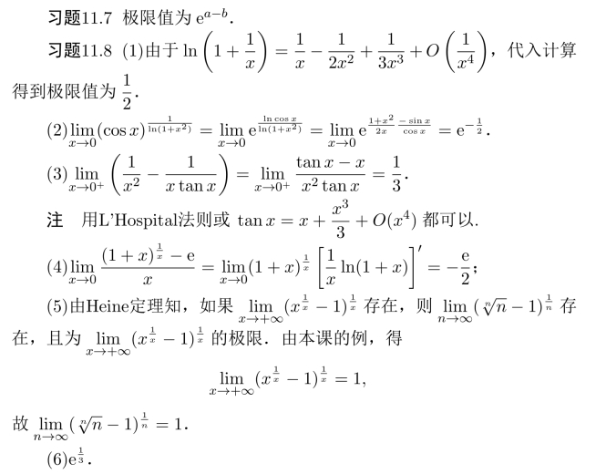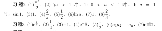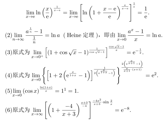 习题17 (1)极限值为3e/2,(2)e1/3,(3)−1/2,(4)e−1/2,(5)
