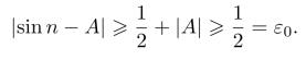 A>0时的情形类似可以得到.故sinn不以任何实数A为极限.