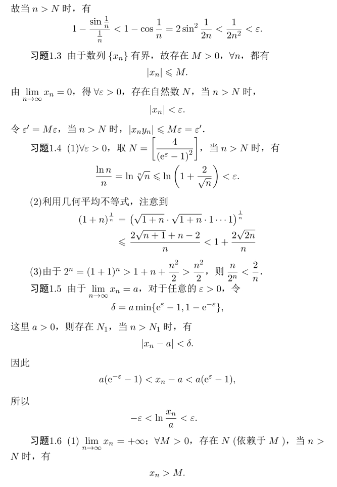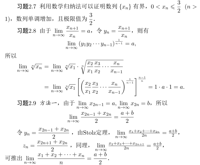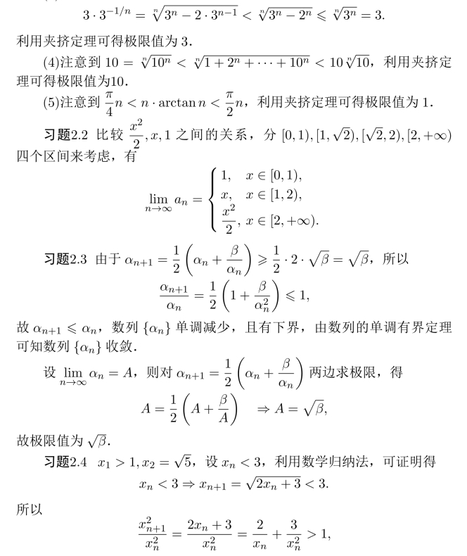 则数列单调增加且有上界,故数列{xn}收敛,同习题2.3,可求得极限值为3.