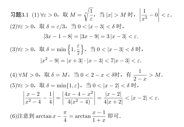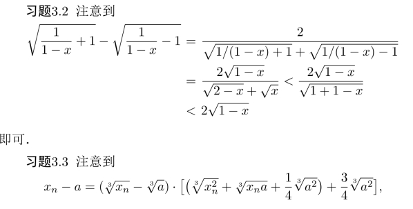 习题3.4 ∀ε>0,取δ=amin{(eε−1),(1−e−ε)},当0<|x−a|<δ时,有可同理证明.