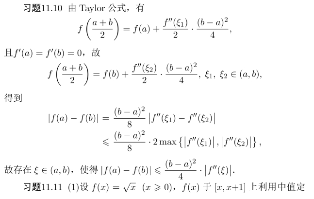 习题11.9 构造函数,利用函数的导数的性质得到证明.