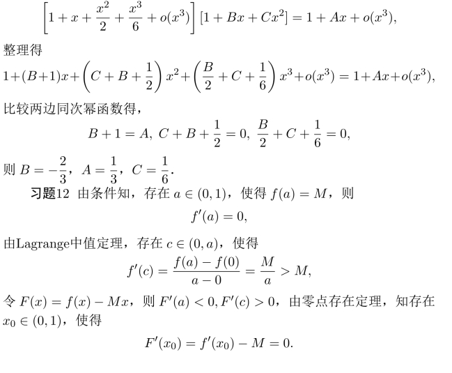 习题11 Taylor公式ex=1+x+x2/2+x3/6+o(x3)代入已知等式得