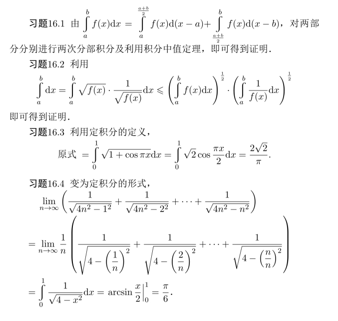 习题16.7 利用积分中值定理及Lagrange中值定理可证得.