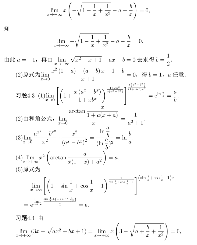 注 本题也可以利用函数的极限的四则运算的结论来解.具体地,由原式得