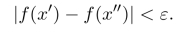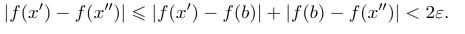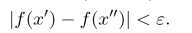 取δ=min(δ1,δ2),当x′,x′′∈(a,c)且|x′−x′′|<δ时,不妨设x′≤x′′,若x′,x′′∈(a,b]或者x′,x′′∈[b,c)时,均有