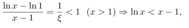 习题12.7 考虑0<x<1,x>1,x=1三种情况,将不等式化简,利用其导数的性质或者利用中值定理得到证明.