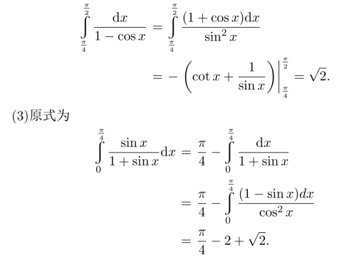 (2)被积函数分子分母同乘以1+cosx,得