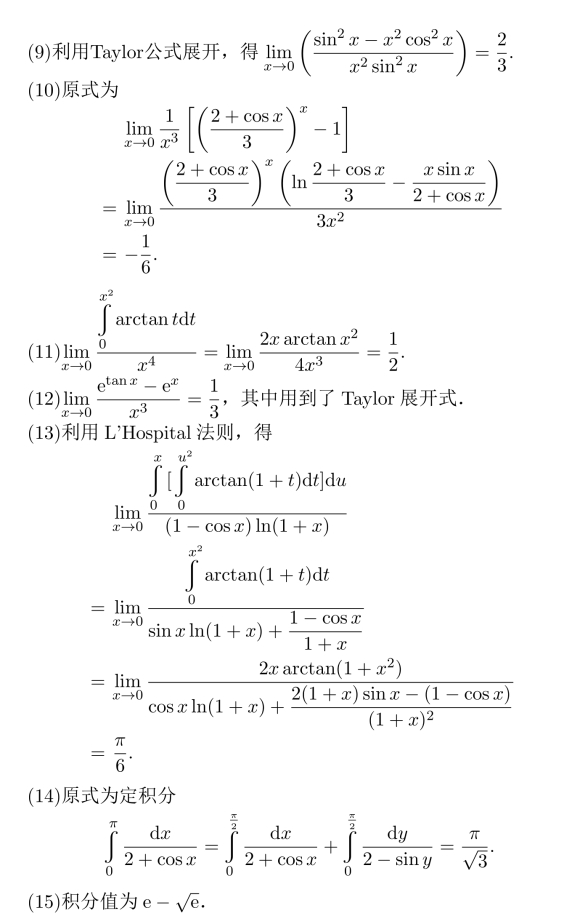习题16 利用Taylor展开,极限值为1/4.