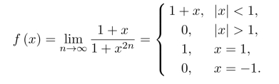 故函数f(x)于x=−1点连续,x=1点为第一类间断点,于其他点连续.