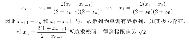 习题2.6 x1>3,x2=4>3,可以归纳证明,得xn>3,故