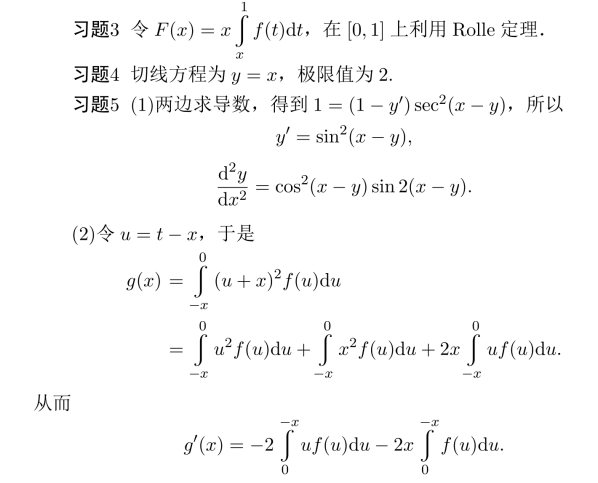 习题8 (1)令F(x)=e−xf(x),在[a,b]上利用Rolle定理得到.