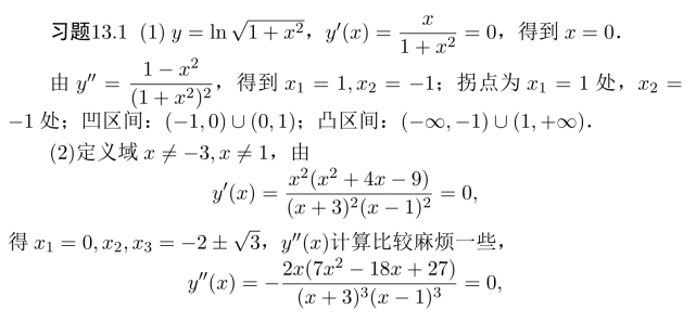 习题13.5 单增区间为(−∞,−1)和(0,+∞),单减区间为(−1,0).
