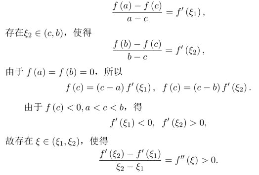 注 由f′(a)f′(b)>0,知存在ξ∈(a,b),使得f(ξ)=0,若f(a)=f(b)=0,则存在ξ1∈(a,ξ),ξ2∈(ξ,b),使得f′(ξ1)=f′(ξ2)=0,这一结果很重要,请读者注意.