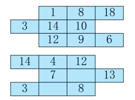 下面的方框要求每一行每一列若有三个数,则相加后得数都相同。如图所示,你试着在下边的方框里填一填吧!