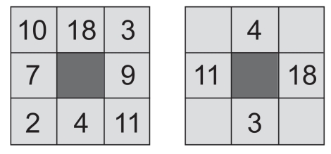 运用第一个格子的逻辑规律,把第二个格子填充完整。