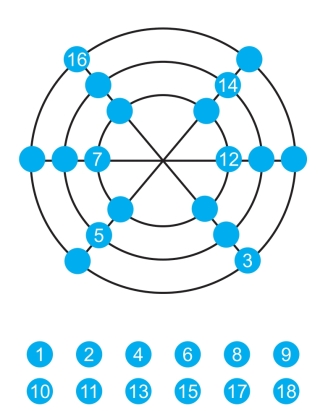 排列1~18这18个数字,使得任意对称的一对数字之和都等于19,其中三对的数字已经排好,请试着排出其他数字。
