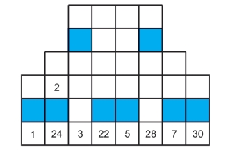请将3~29这27个数字填进方格中,使1~30每相邻两个数所在的方格之间始终保持等距,即两个方格中心点间的距离相等,该怎么填呢?