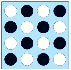 现在有人想把如图所示的这16颗棋子分成白的一排,黑的一排,而不是黑白相间。请问,在不增减棋子数目的情况下,他至少要移动几颗棋子?