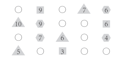 请你观察图形上的数字顺序,在没有数字的图形上写上正确的数字。