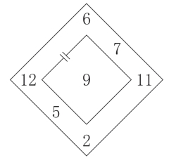 从图中所示菱形上顶端的数字开始,顺时针方向经过六道加、减、乘、除运算,最后得数为9。