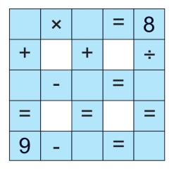 在图中填入数字,使之在横竖方向的计算表达式都是正确的。