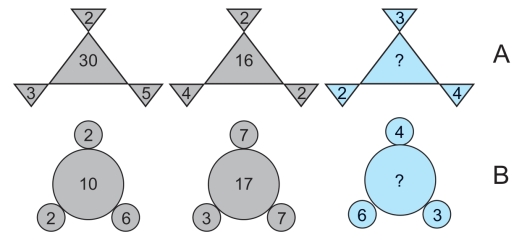 下面每一组图形都有它自己的规律。先把规律找出来,再把空缺的数字填进去。