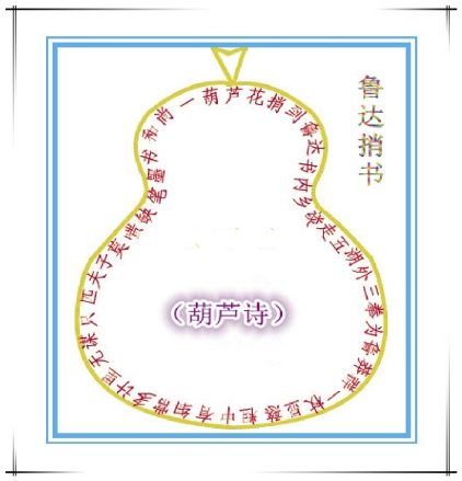 葫芦诗,葫芦内藏有49个字,可以读成一首七言律诗。它的读法是下句首字均借上句末字(实际是首尾回环的顶真七律)。