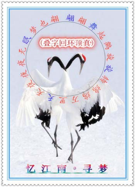 翩翩舞,舞起鹤旋旋,旋转绵绵情未了,了时夜夜夜无眠,眠梦也翩翩。——刚刚