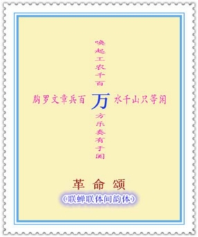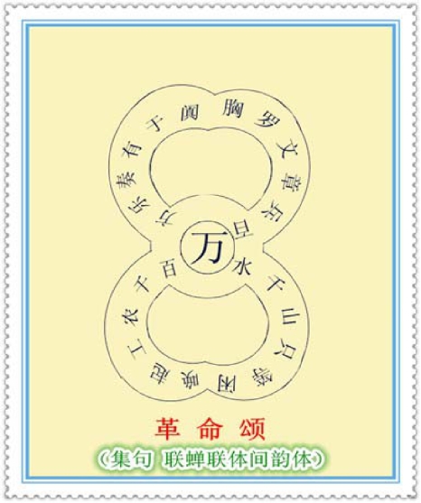 读法:先右后左,从“胸罗”读起,“万”为公用字,读到它时,再读一次,当下句的首字。