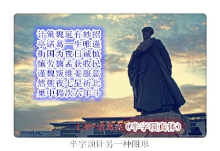 读法:从诸葛开始弓字形转,每行的首字不参加,直到最后一行才从下往上读每行的首字,读到第一行右折读到招为止。