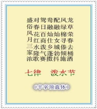 从春日开始弓字形转,每行的首字不参加,直到最后一行才从下往上读每行的首字,读到第一行右折读到龙为止。