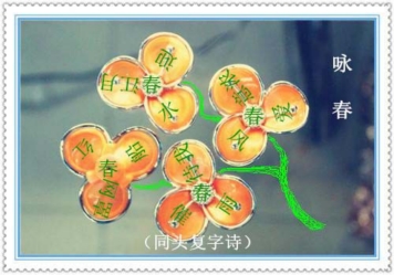 第三句的春字位置挪动一下还可以做成三瓣花图。