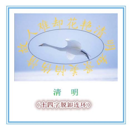按:十四字脱卸回环诗,每个字都用到两次,因此又可当叠字诗来写。
